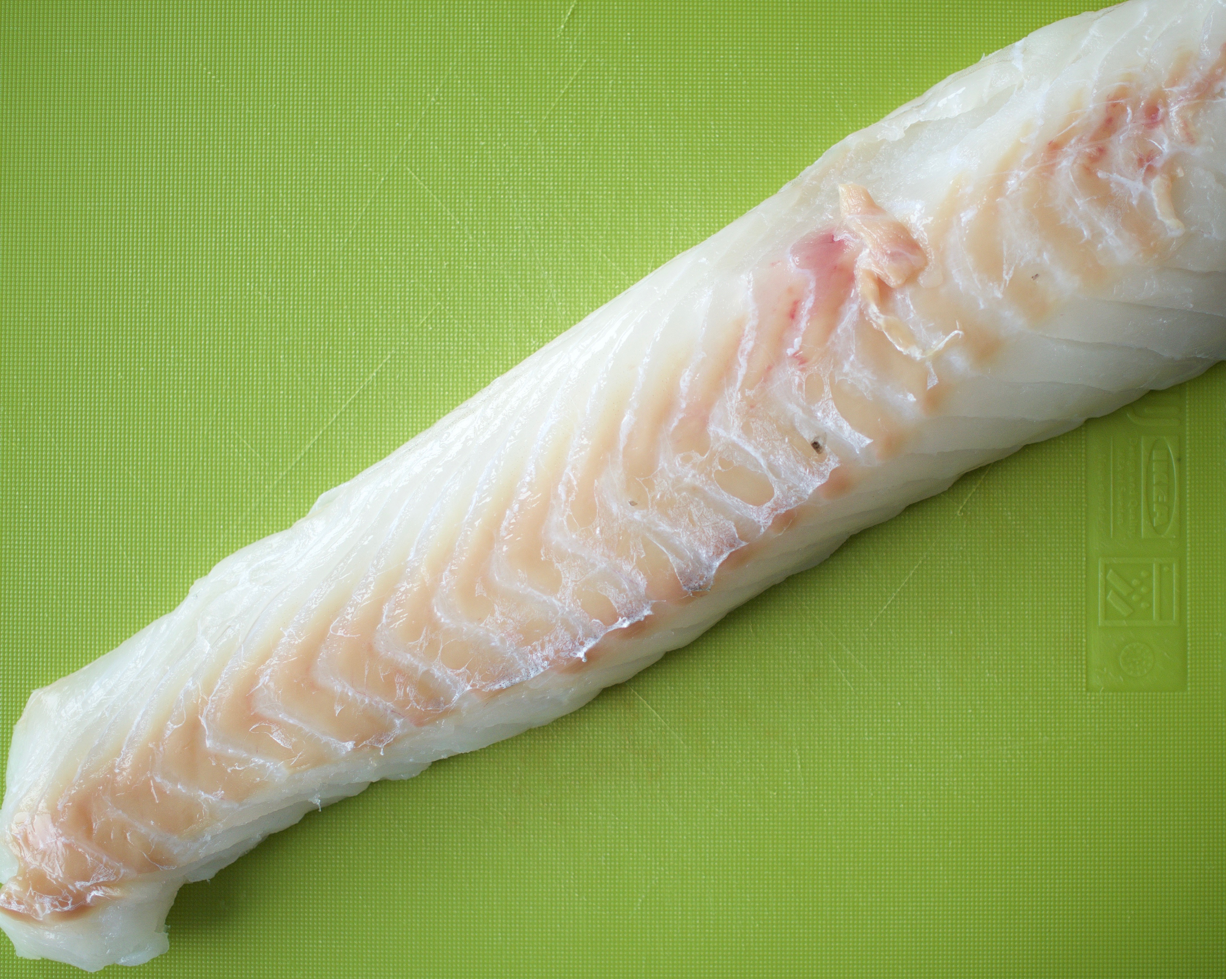 Ensimmäisten parsojen lisäksi oli lähikaupassamme tarjouksessa myös turskan seläkettä. Turskahan on pitkään ollut merkittävästi ylikalastettu kala ja WWF:n kalaoppaassa turskalla on niin punainen kuin keltainenkin liikennevalomerkintä ylikalastuksen vuoksi. Mutta turskan tila on onneksi joillakin alueilla korjaantumassa. Norjan- ja Barentsinmereltä pitkäsiimalla ja verkoilla pyydetty, MSC-merkitty turska on saanut vihreän valon eli siellä kanta on palautunut hyväksi. Ostamammme turska oli tällaista kestävästi kalastettua. Turska on erinomainen ruokakala, siinä on isot lihassyyt ja sen maku on raikas. Ei ihme, että se on ollut pääasiallinen raaka-aine fish & chips -annoksissa!