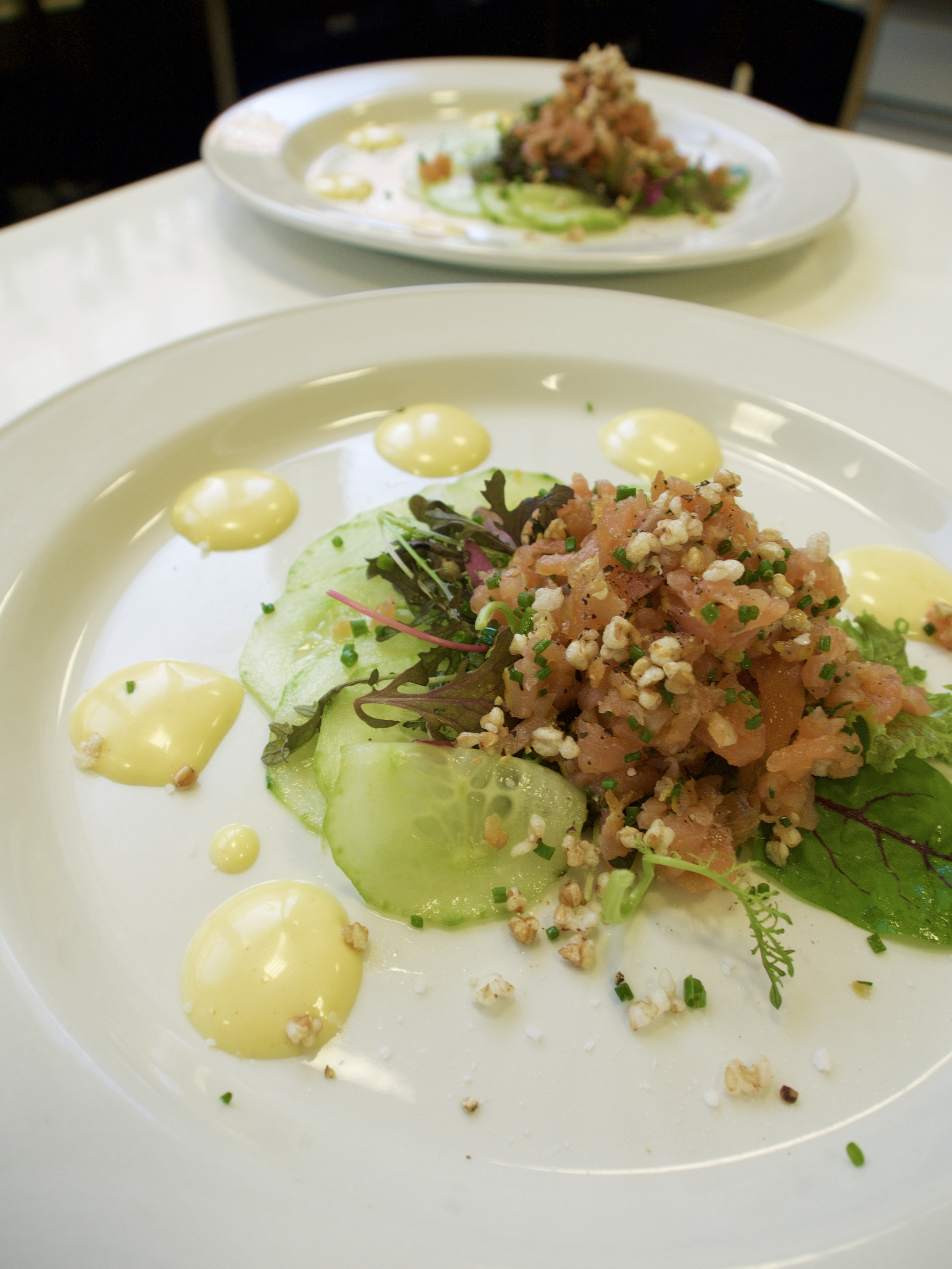 Pääsimme pressitilaisuudessa jo maistelemaan ennakkoon muutamia annoksia: Hella ja Huone tarjosi meille lapin lehmää ja maa-artisokkaa, Bistro&Mat maistatti uudistettua haukiburgeriaan ja maistatuksen viimeisteli Toca maitosuklaavanukkaallaan. Lisäksi Imagen tilaisuudessa saimme kokeilla ravintola Kolmos3n tempurahaukea, jonka taikinassa oli käytetty heidän omaa lager-olutta. Erittäin maistuvia annoksia kaikki.