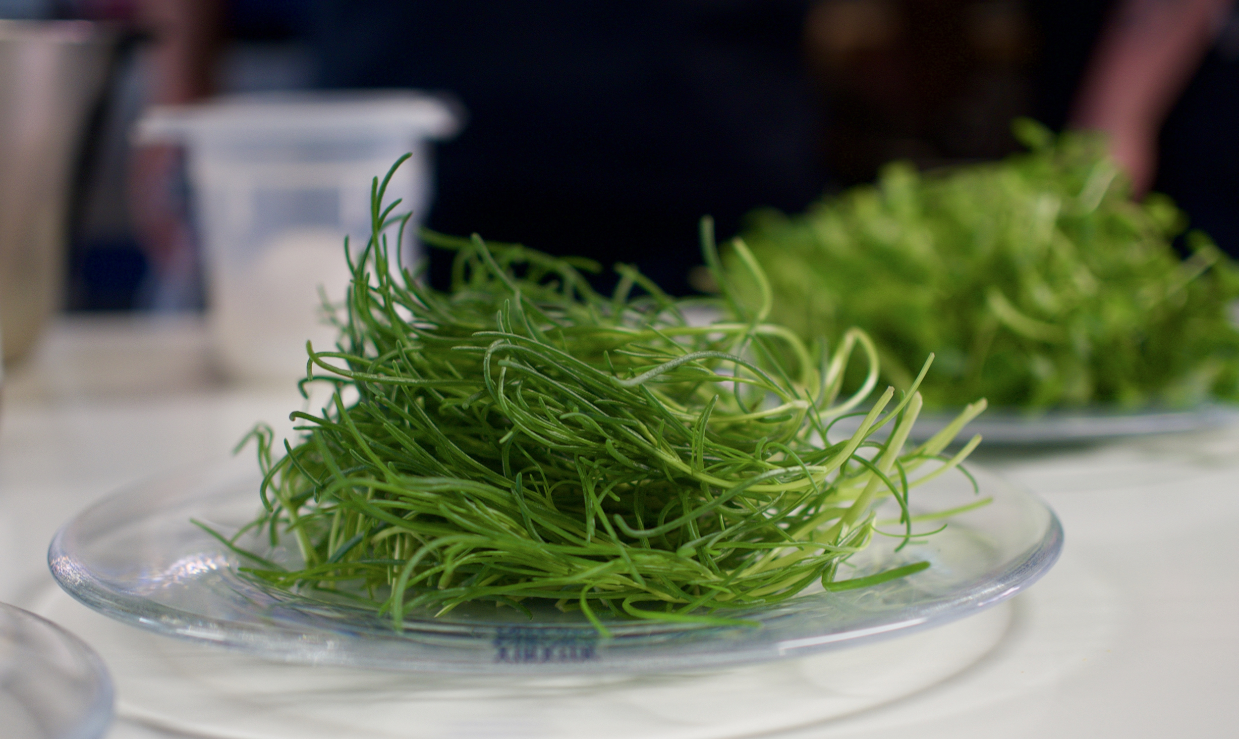 - Grön – Grillattua ja karamellisoitua kesäsipulia, suolattua porsasta, vehnää ja savustettua luuydinkastiketta
