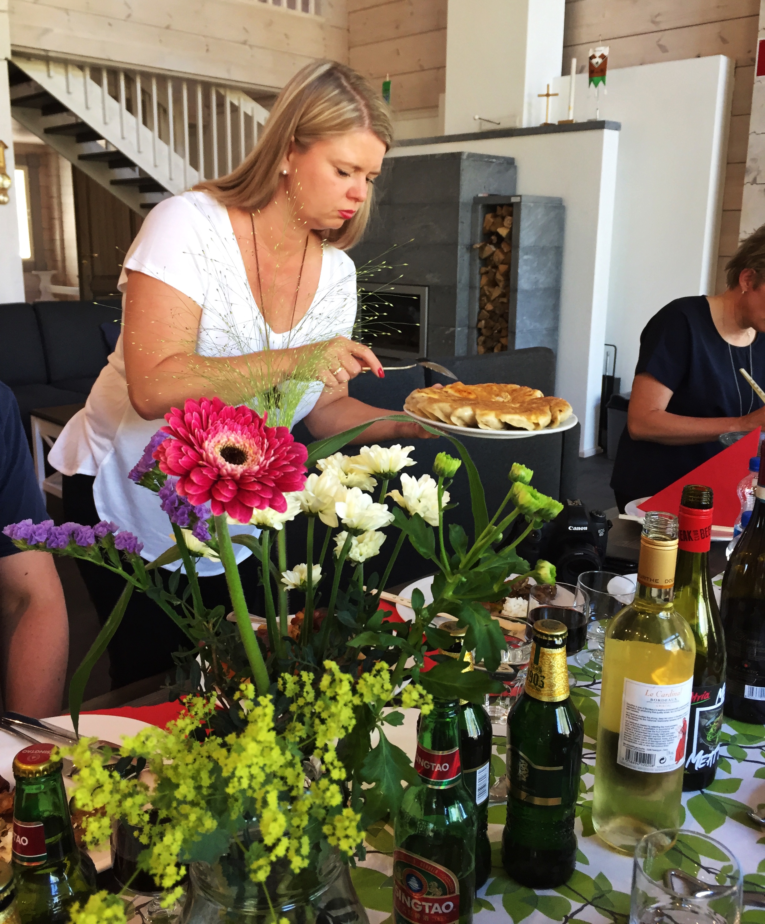 Kun ruokabloggaajista oli kyse, ei päivää voi päättää ilman ruoanlaittoa! Tehtaalta hyppäsimme taas pikkubussiin ja hurautimme paikalliselle metsästysmajalle, joka kuten pohjalaiseen tyyliin sopii, näytti enemmän paremman luokan hirsihuvilalta kuin miltään äkkiseltään kasaan kyhätyltä majalta! Siellä meitä odotteli Helsingissä asuva Jing Liu, joka myös on bloggaaja. Hän tosin bloggaa kiinaksi, joten ohjeiden osalta on näihin meidän kuvauksiimme tyytyminen.